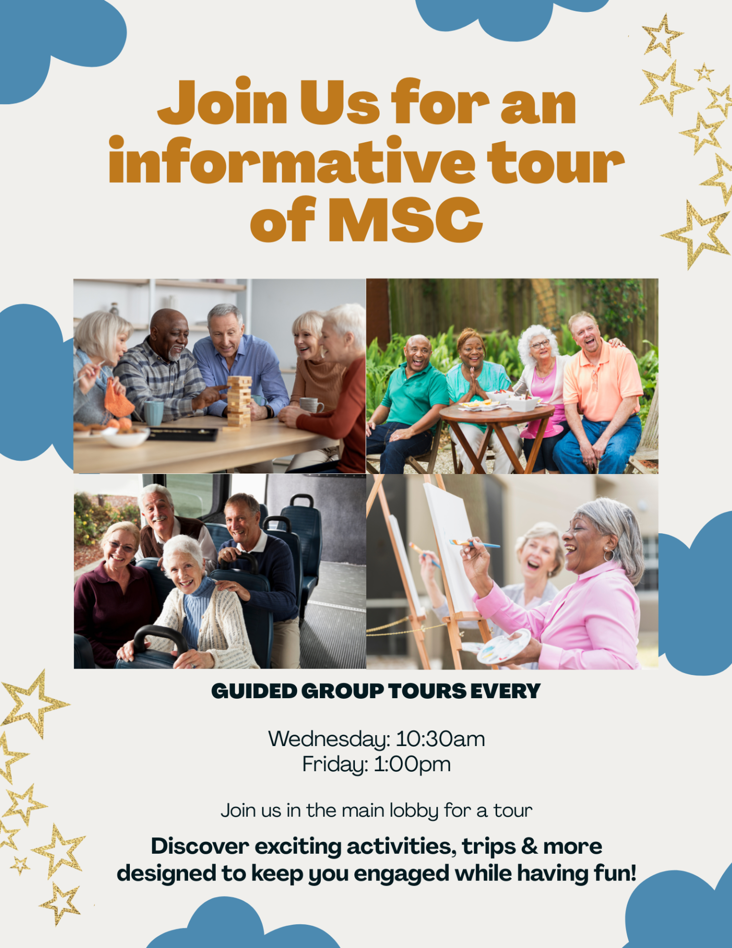 Our mission at MSC is to encourage and support an independent lifestyle by designing and providing excellence in services, activities and programs that meet the continuing and diverse needs of seniors aged 50 and over, who seek to maintain the highest quality of life and contribute to the good of the community.